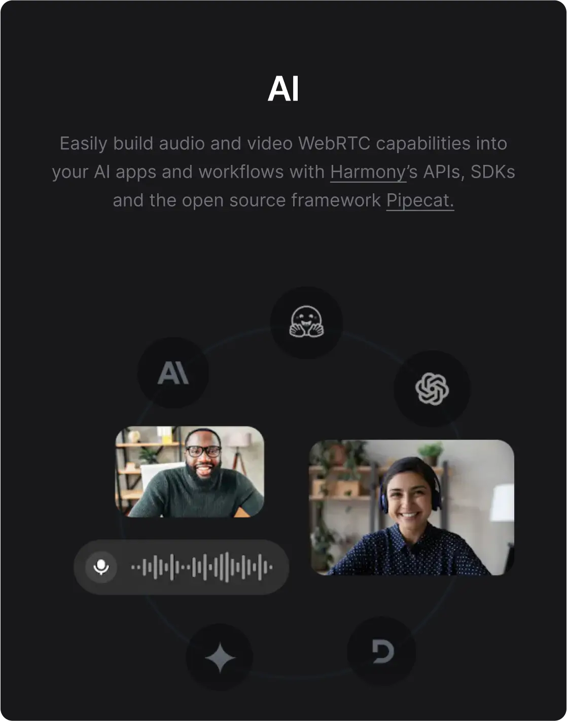 Need separate audio and video tracks for each participant? Harmony’s raw-tracks recording mode saves the raw audio and video stream.